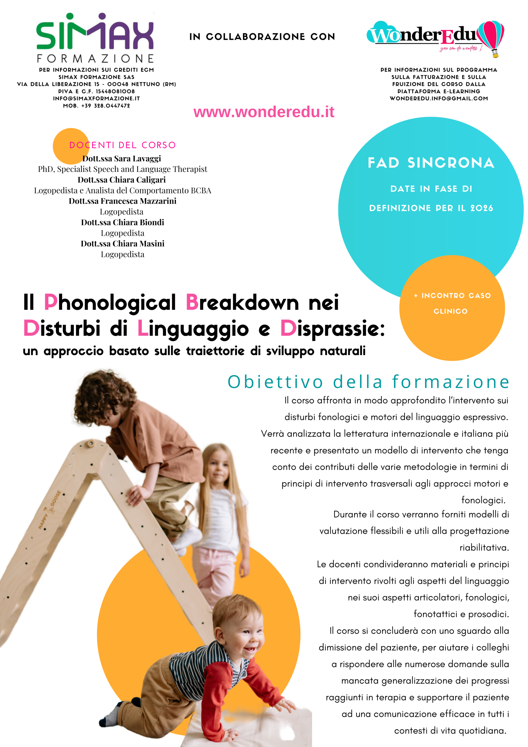 Le nuove date per il secondo semestre 2026 saranno disponibili a breve! Vuoi prenotare il tuo posto? Scrivici a wonderedu.info@gmail.com